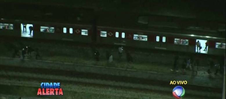 Os passageiros caminharam pelos trilhos para conseguir chegar até a estação mais próxima, por volta das 19h30 ainda havia passageiros caminhando pela via.