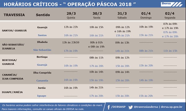 Vai viajar pro litoral paulista no feriado? Antes de sair, confira na tabela abaixo os melhores horários nas travessias litorâneas e aproveite com tranquilidade.
