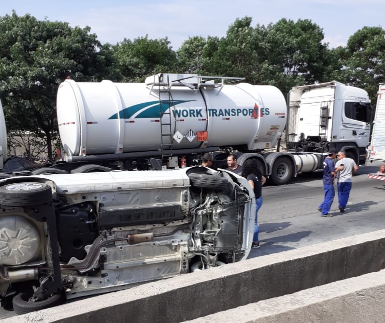 Um carro capotou e bloqueou duas faixas da pista expressa da Marginal Tietê, na direção da rodovia Ayrton Senna, 200 metros antes da Ponte do Limão, na tarde desta terça-feira, dia 29 de outubro.