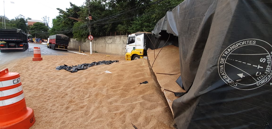 Segundo a rádio Trânsito, o caminhão que tombou, destruiu parte de um muro, atingiu um carro, que colidiu com um poste.
