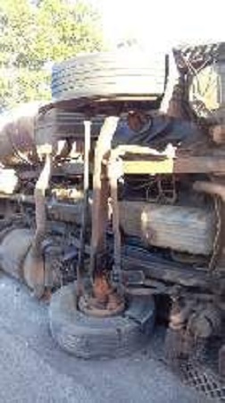 Uma carreta Scania R-124 tombou na altura do km 346 da SP-333 (rodovia Rachid Rayes), sentido Leste, em Marília, às 16h37 de terça-feira, 20 de junho.