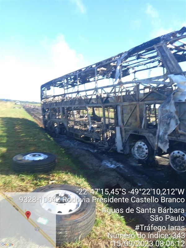 Um incêndio em ônibus Marcopolo Paradiso foi registrado no km 303,8 da rodovia Castelo Branco, sentido SP, em Águas de Santa Bárbara, na madrugada desta sexta-feira, 15 de setembro.