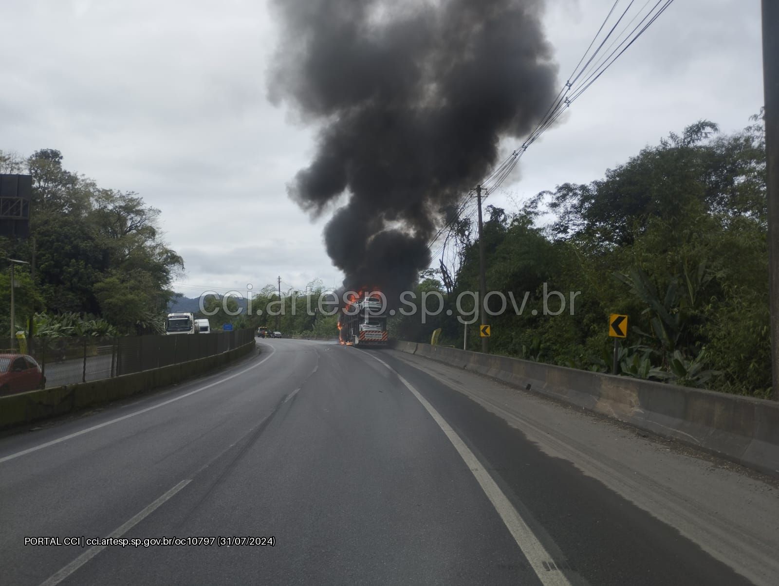 Nesta quarta-feira, dia 31 de julho de 2024, um incidente ocorreu na rodovia Cônego Domênico Rangoni (SP-055), no km 260,2, em Cubatão, envolvendo um incêndio em uma carreta.