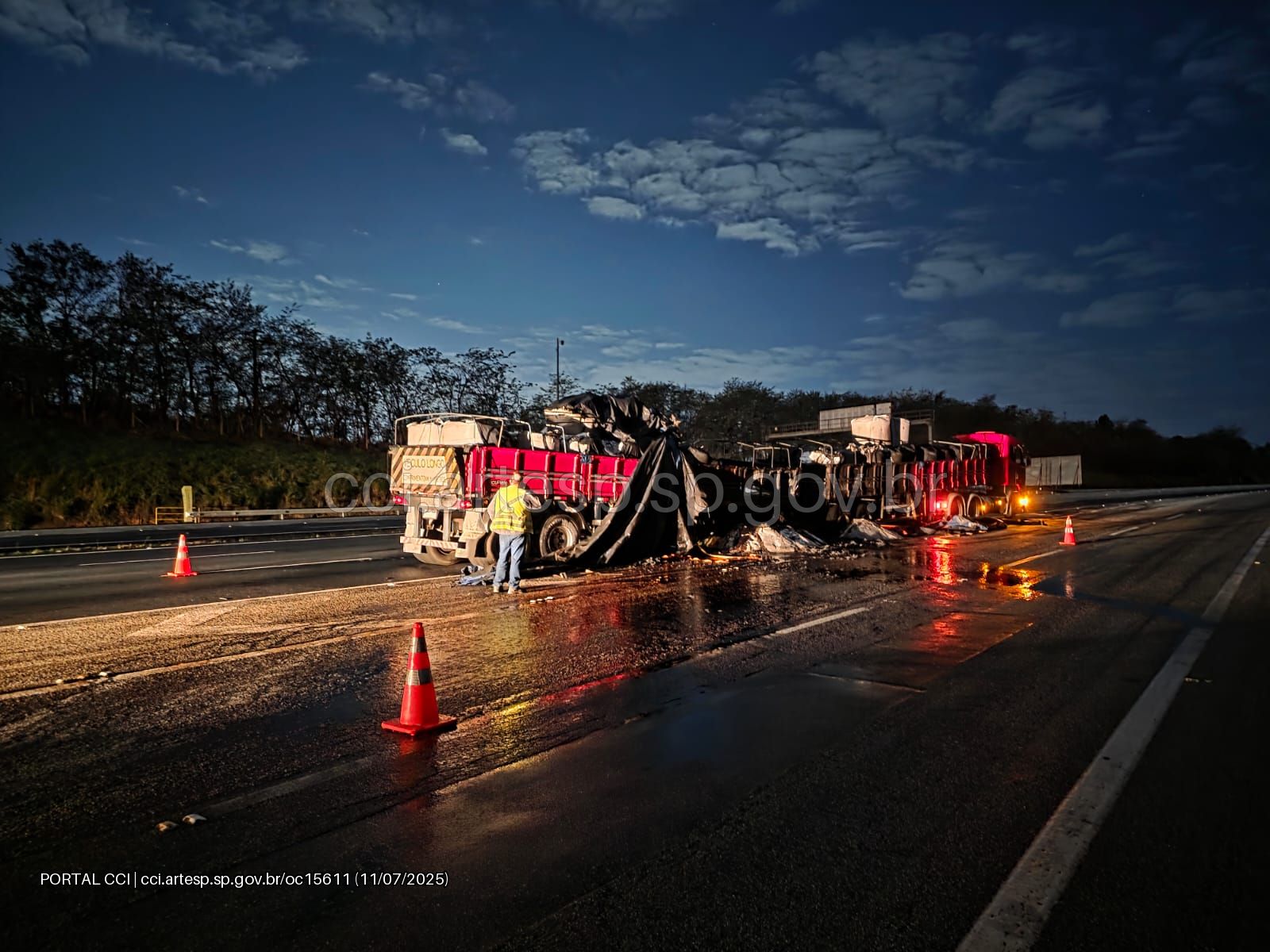 A ocorrência causou interdições na faixa zebrada, acostamento e faixas da pista expressa. O tráfego ficou lento entre os quilômetros 72 e 74 por cerca de uma hora. A remoção da carreta ocorreu às 5h19, mas a limpeza da pista seguia pendente até a manhã desta sexta-feira (11).