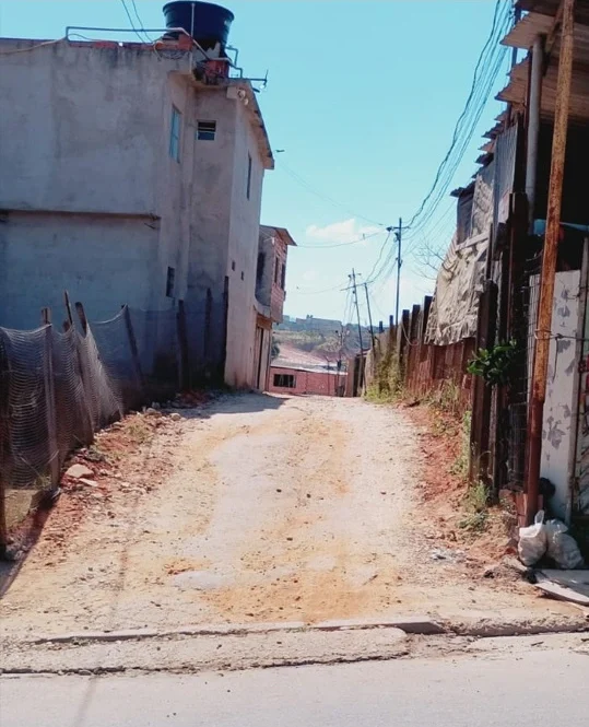 A travessa, que fica próxima à Estrada da Parteira e à Rua dos Anjos, enfrenta problemas constantes de poeira, lama e dificuldade de acesso, afetando a rotina de famílias que aguardam por melhorias.