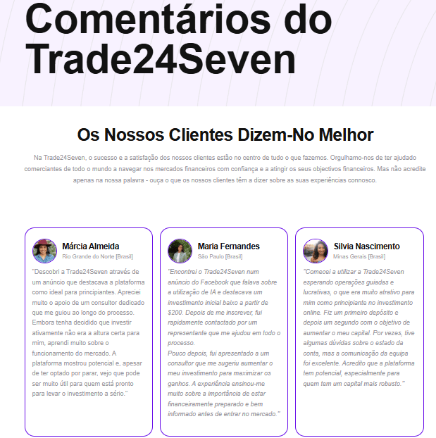 O Trade24Seven.com está comprometido em manter os mais altos padrões de transparência, segurança e confiabilidade para seus usuários. É importante entender que o Trade24Seven.com NÃO é um golpe, e a plataforma opera com integridade e conformidade no centro de seus negócios.